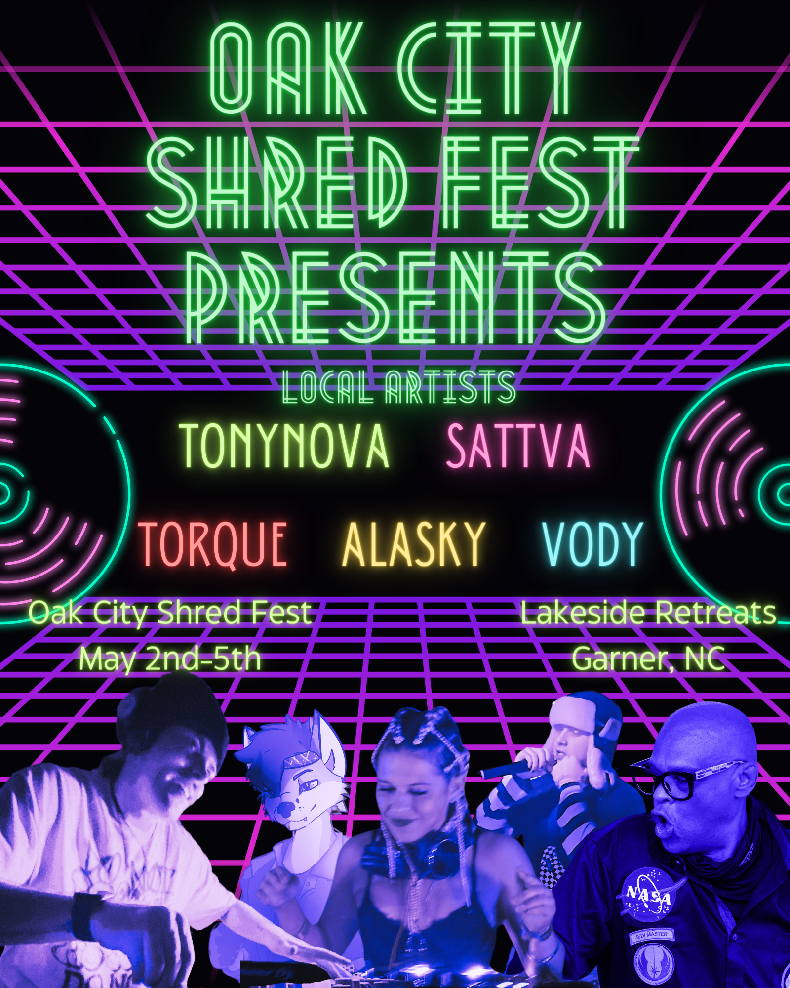 Oak City is proud to invite local artists and DJs to the stage this year! Don’t miss out on the late night fun with dancing competitions, flow toys, and more!